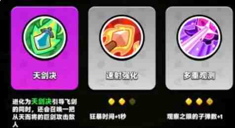 三人出战的关键好处就在于技能池更加的纯净,每一次升级时都会有两个英雄相关的技能,还有一个通用的技能。在7级之前就需要凑齐两个核心的技能,8级时可以选择召唤天使,目的就是为了下一轮多争取一个技能选择位。9级的时候就可以(jiukeyi)直接刷出剑仙最后一个技能,10波小BOSS就能顺利的觉醒,在推图时会拥(yong)有更好的效率。不过玩家还需要注(zhu)意(yi)靈活的调整,如果卡了3~4级,还是没有刷出斗技,那(na)就(jiu)没有必要选择死磕阵容,赶紧开4个英雄扩大技能池。