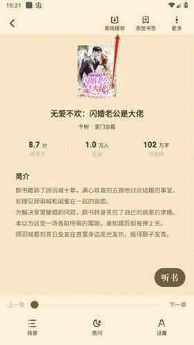 2、进入(jinru)阅(yue)读页(ye)面(mian),点击(ji)“离线(xian)缓存”选项(xiang)。