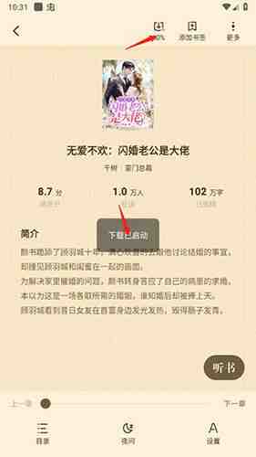 喵爪小说app小说下载流程打开喵爪小说,点击书城或者书架,选择需要下载的小说,喵爪小说app小说下载流程进入阅读页面,点击“离线缓存”选项,下载启动,了解更多内容请看下面。
