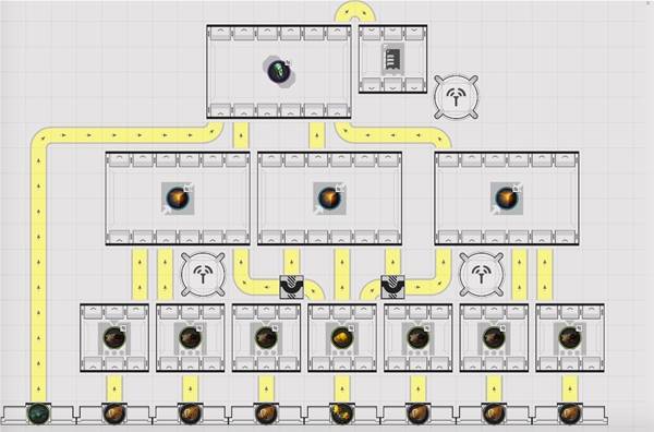 使用(yong)的设(she)施:研磨机*3、仓库取货口*8、封装机*1、协议储存箱*1、粉碎机*7、息壤供电桩*2、供电桩*2、物流桥、传送带