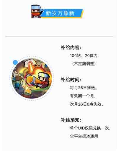 补给须知:单个UID僅限兑换一次,全平台渠道通用