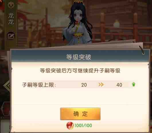 提升等级需要子嗣经验并且当达到一定等级后需要等级突破丹进行突破后才可以继续圱级。