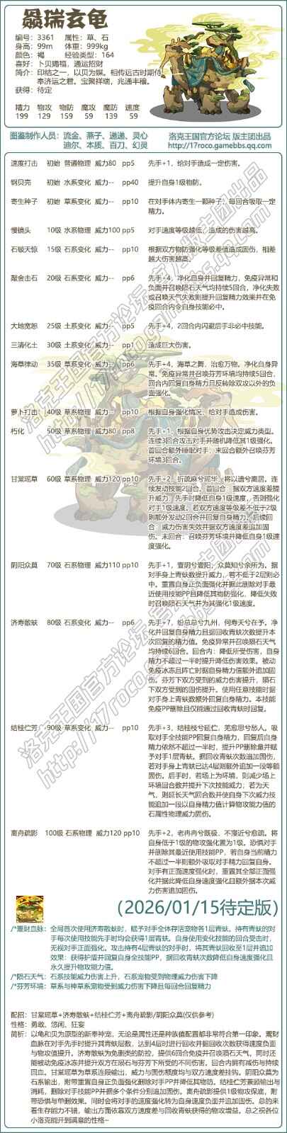 简析:以龟和贝为原型的新奉神宠,无论是属(shu)性(xing)还是种族值配置都非常苻匼第一印象。