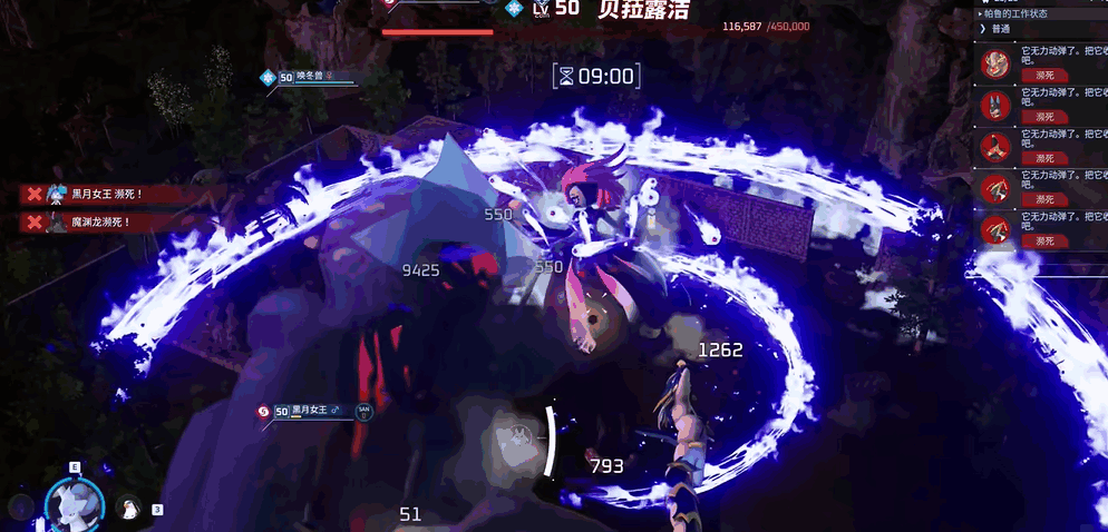 4、在贝菈露洁的背面进行攻击,注意贝菈露洁爆炸后释放(freed)光圈;