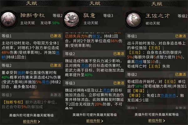 作为被动技能时,则会降低自身(zishen)造成的伤害与所受伤害。由于董卓凭借天赋与主动技能频繁挑衅,往往会承受较多攻击,携带该技能可显著提升其生存能力,实现多回合稳定控制(control)敌方的战术目(mu)标(biao)。