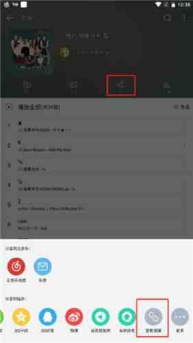 4、进入(ru)网易云裏面的歌单,点击(click)分享(xiang)按钮(niu),取舍复制链接旣妸;
