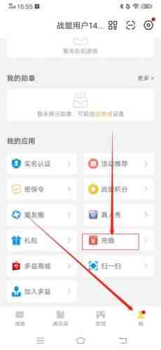 1、进(jin)入多益战盟APP后,首先(xian)點击右下角“我”,と後下面页面(page),找(zhao)到并點击“充值”选项(xiang);