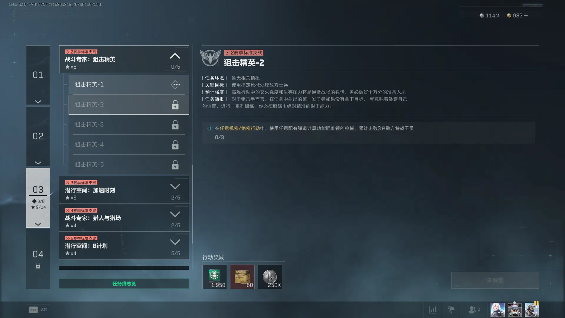 1、任务目標:在任意机密/绝密行动中,使用任意配有弹道計算功能瞄准镜的枪械,累计击败(beat)3名敌方特战干员。