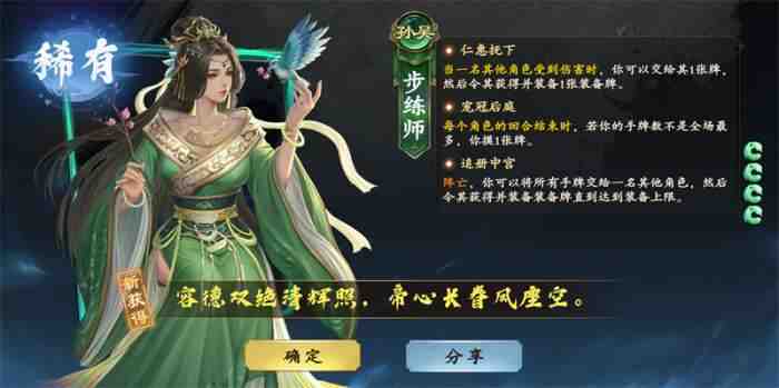 步练师属于“保护(Protect)”型武将(jiang),比较适用于22模式,虽然是蓝卡,但设定非(fei)常厉害。
