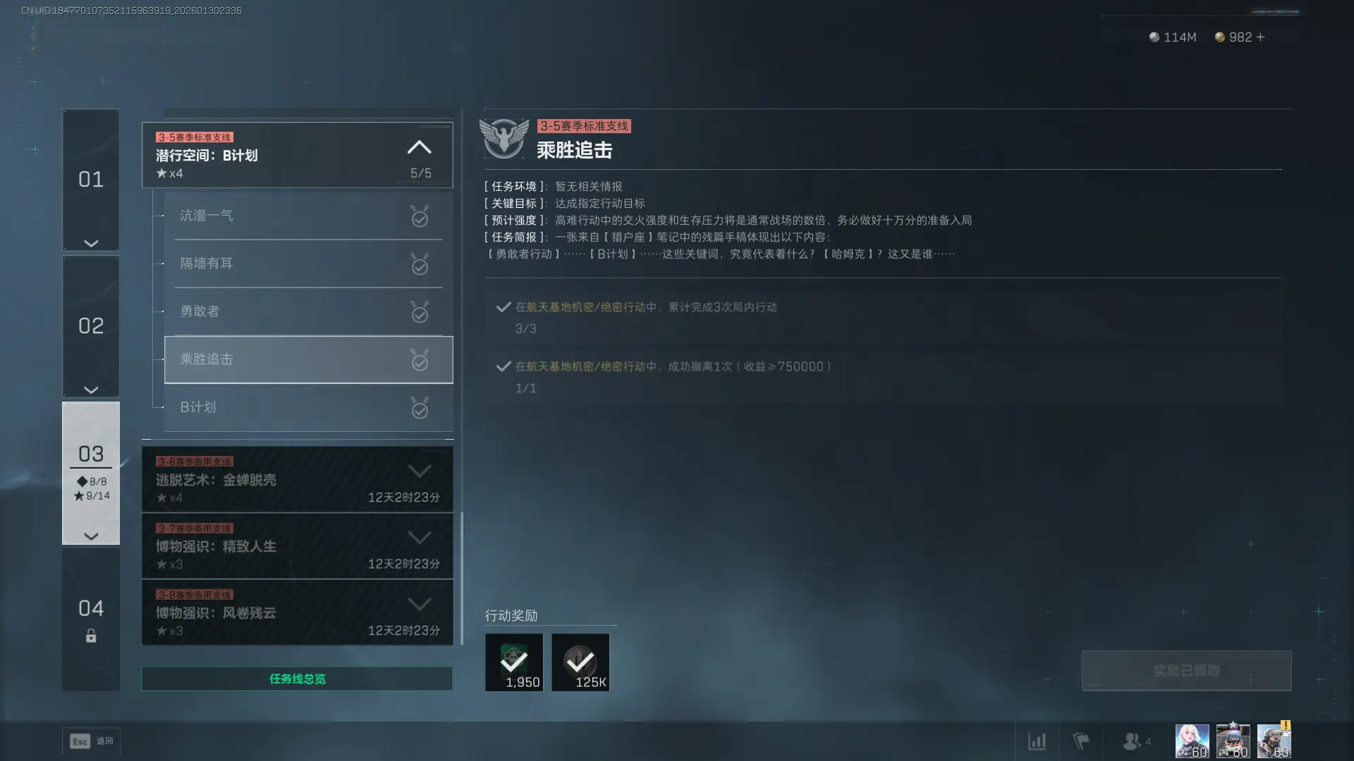 4、任务奖励:经验x1950、哈夫币x125000
