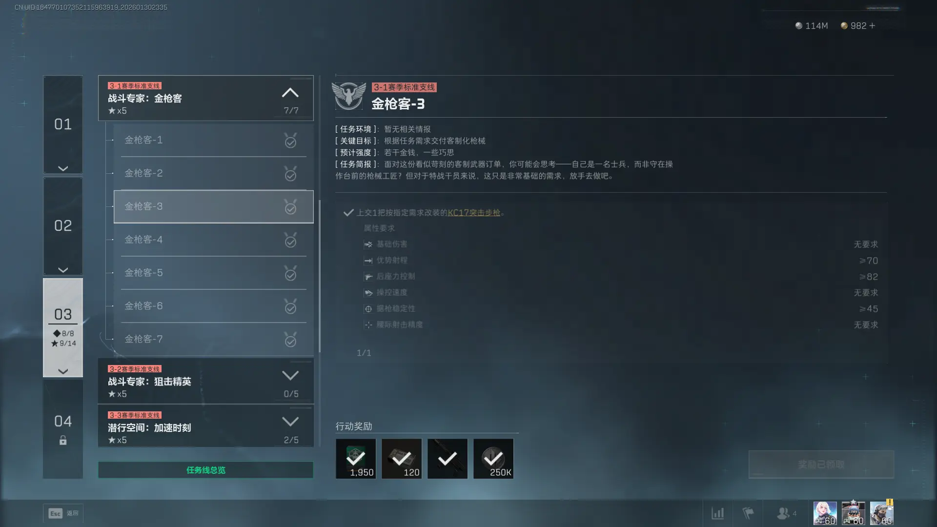 4、任务獎勵:经验x1950、5.45x39mm BSx120、半改KC17突击步枪x1、哈夫币x250000
