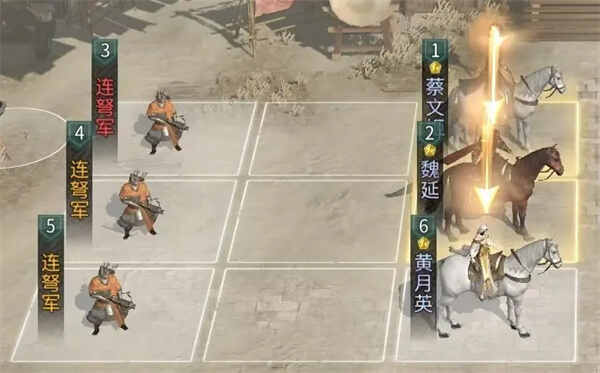 英雄站位:魏延有一個很重要的机(ji)制,即造成伤害不受自身兵力影(ying)响,意味着他可以站中间来吸收名将的伤害,并且魏延觉醒还能给自己施加护盾,肉盾加主c,存在感拉满了,三位英雄都放置在前排,魏延站黄月英与蔡文姬的追击格,蔡文姬站魏延的追击格。
