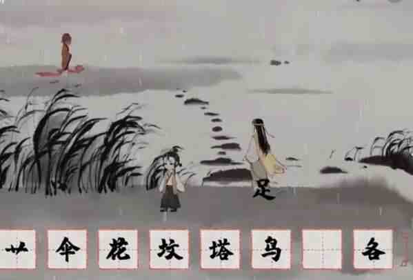 把〔鞋〕〔花〕〔伞〕给无足人,〔鹭〕拆〔路〕,用〔路〕为无足人铺路过河(我感觉最好(zuihao)按这(zhe)个(ge)顺序,我不按这(zhe)个(ge)顺序来无足人一直不(bu)过(guo)河)