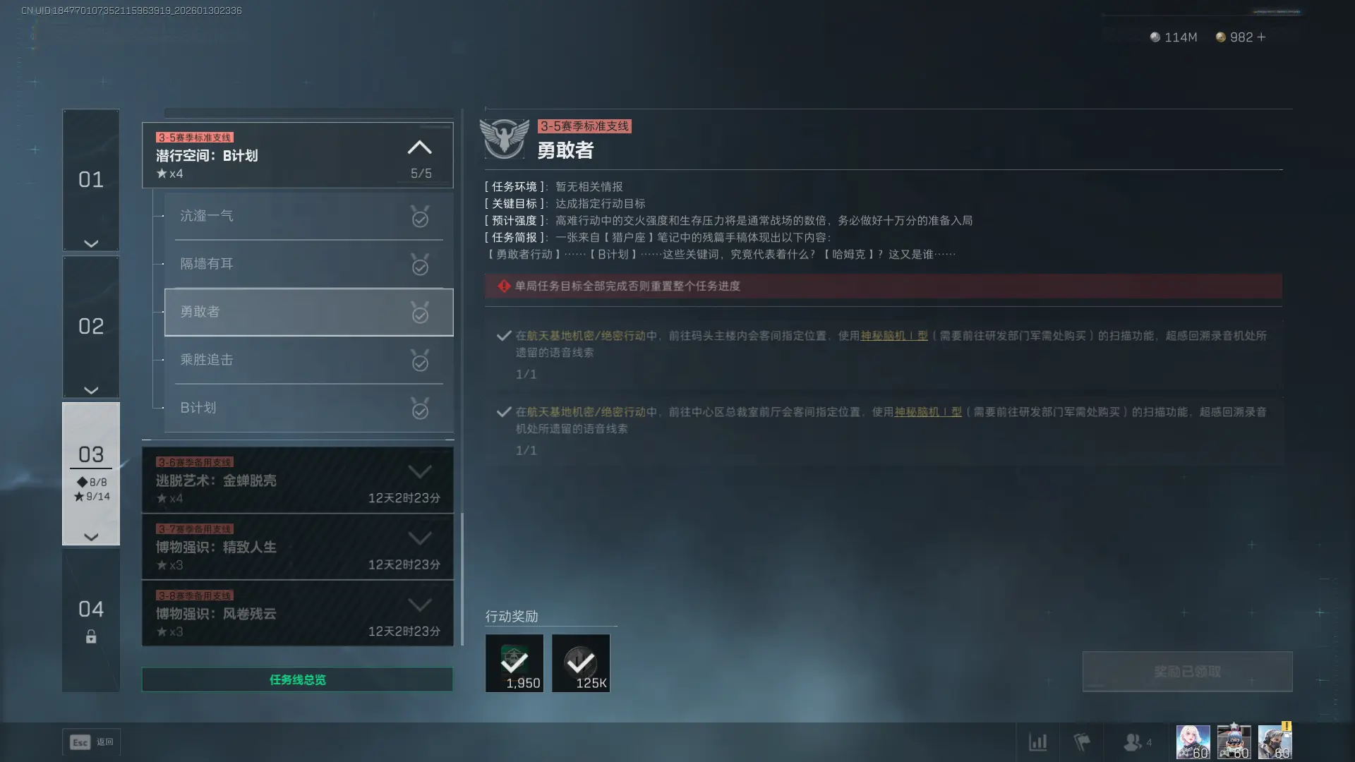 4、任务奖励(li):经验x1950、哈夫币x125000
