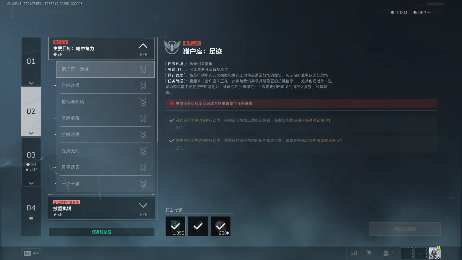三角洲行动s8猎户座足迹任务攻略一、任务攻略