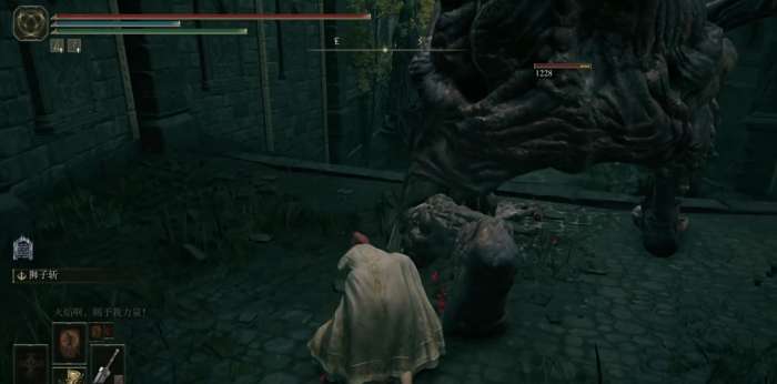 洞穴在癫火村北面悬崖下入口被藤蔓遮着,进去后直走到底会遭遇咒血骑士BOSS,蕾姐会再次被召唤助战。