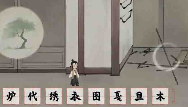 6、拆分【袋】,把【衣】放到镜子前面,获(huo)得(de)【绣】,拆分【绣】和【灯】,拆分【秀】,组合【禾】和【火】得到(get)【秋】,等门上图(tu)案变成(biancheng)秋天后,把【秋】拖到门上。