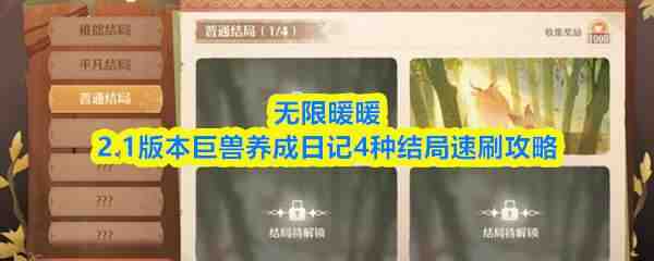 今天小编给大家带来无限暖暖2.1版本巨兽养成日记4种结局速刷说明相关内容大全,有不清楚的或是想了解无限暖暖2.1版本巨兽养成日记4种结局速刷说明更多相关的小伙伴,欢迎持续关注本站。
