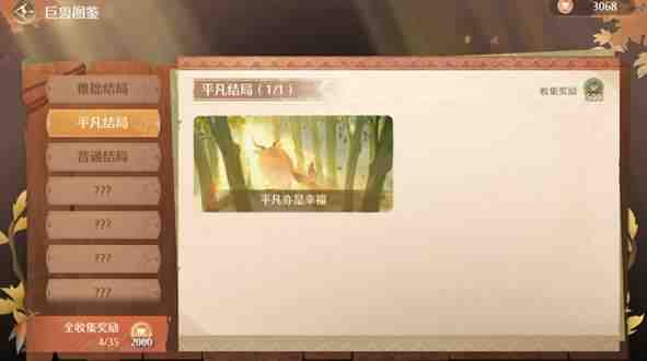 3、第三只巨兽,完成结局【平凡亦是幸福】,达成条(tiao)件总值>1996,且没有A和S。