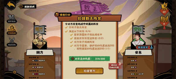 安东的话灭掉安禄山后直接拉拢勤王阵营(camp)。