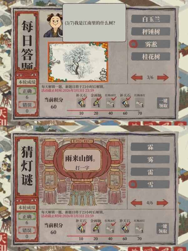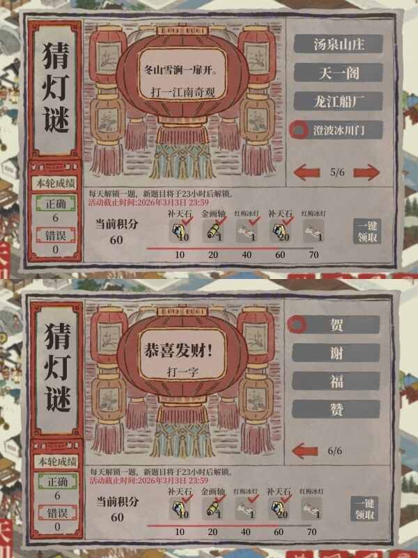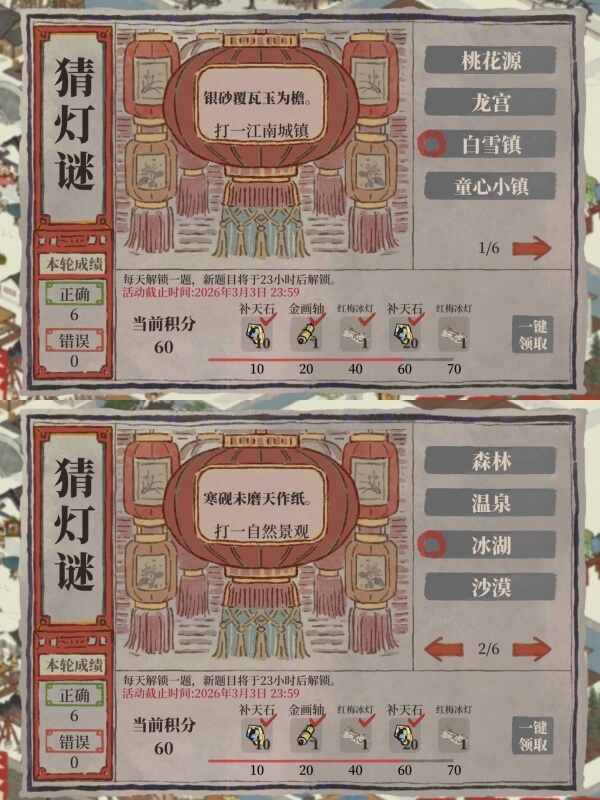 江南百景图2026年2月猜灯谜活动正确答案-江南百景图