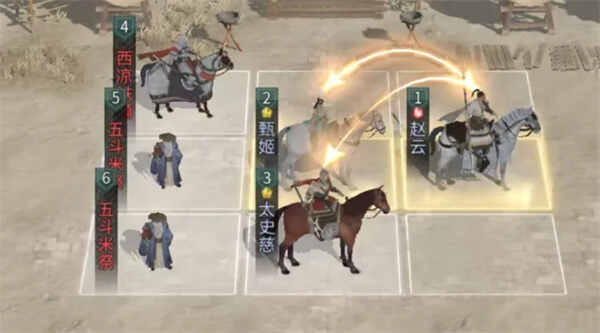 英雄站位:太史慈不站追击格,赵云站太史慈的追击格,并与甄姬互站追击格。