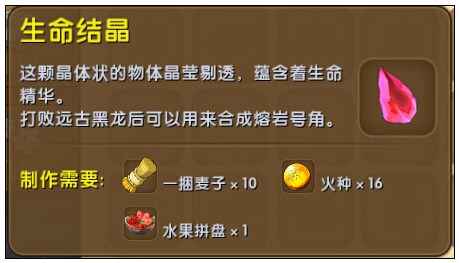 迷你世界生命结晶要在合成台处进行合成,材料是一捆麦子*1掉落(luo)(5掉落(luo)个麦子合成一捆麦子);火种*16(打败硫磺射手有机会掉落);水果拼盘*1(3个方西瓜片、1个野果、1个简易木碗合成)。