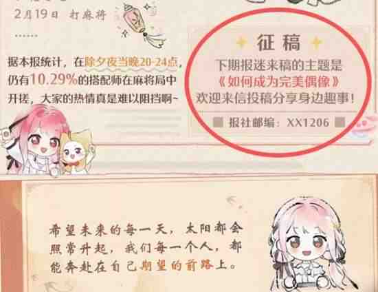 2.1的预告小报是提到《如果我是巨兽你会爱我吗》,最终呈现的是新玩法 巨兽养成,只能说我爱巨兽,但不爱反反复复养very much次巨兽~ 和萤火虫新套装基本上毫无关系!那么2.3这次小报预告的《如何(he)成为完美偶像》,很可能也与服装无关!可能是玩法或(huo)者剧(ju)情,巧的是关于完美偶像早已经埋下故(gu)事!