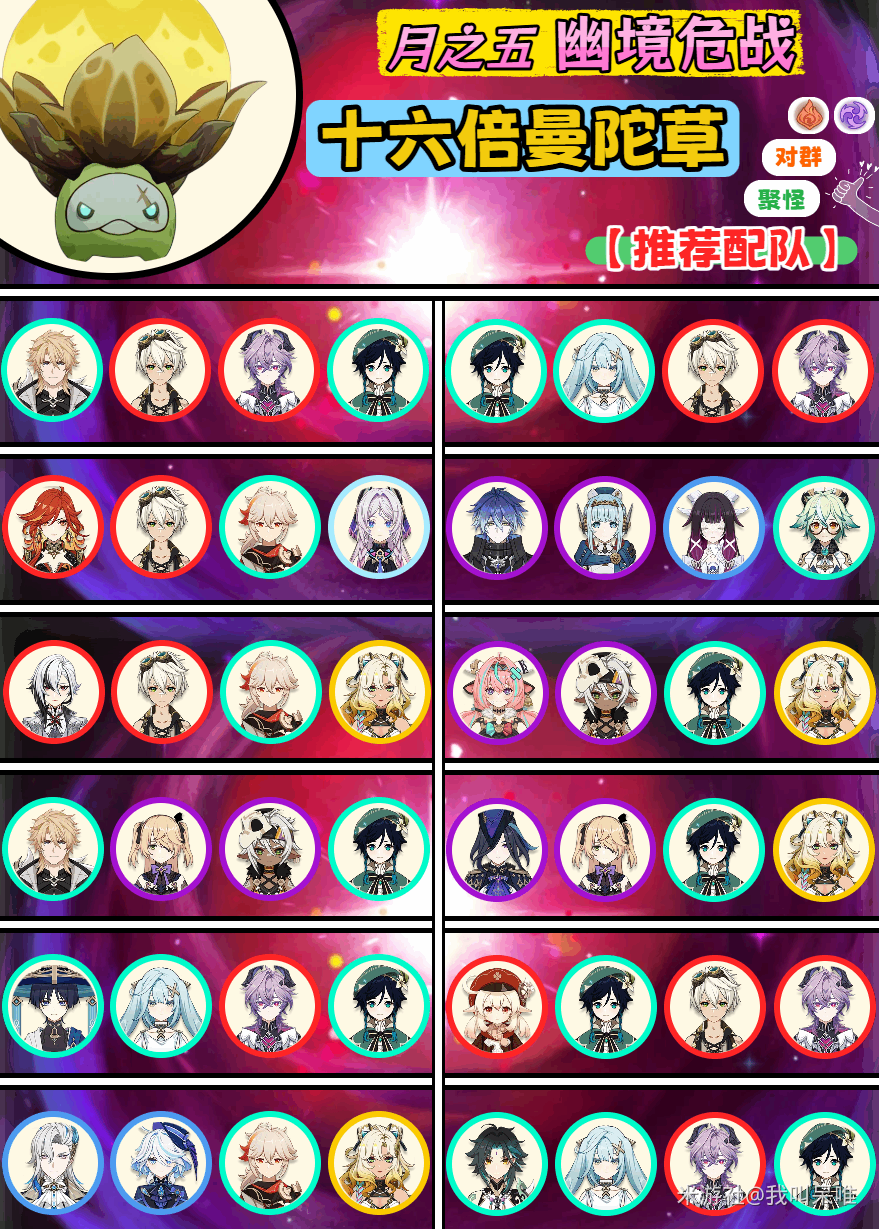 原神月之五幽境危战历经百战的十六倍曼陀草怎么打:网友说本次版本更新上线了许多新内容,还上线新的挑战幽境危战,那么有不少小伙伴好奇月之五幽境危战历经百战的十六倍曼陀草怎么打,想要了解更多可以点击下面看看。