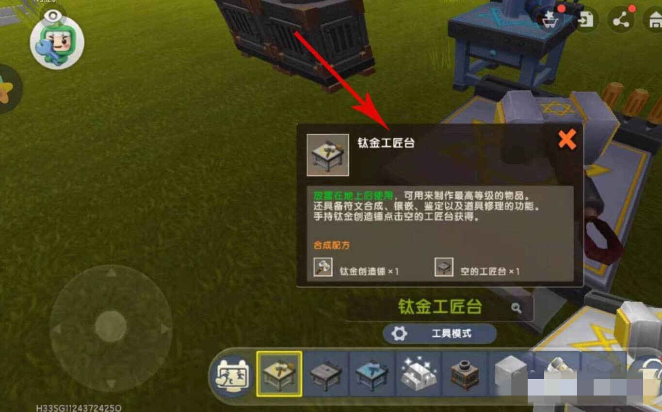 5、应用钛金创(chuang)造锤點击空的工匠台即(ji)可(ke)合成钛金工匠台。