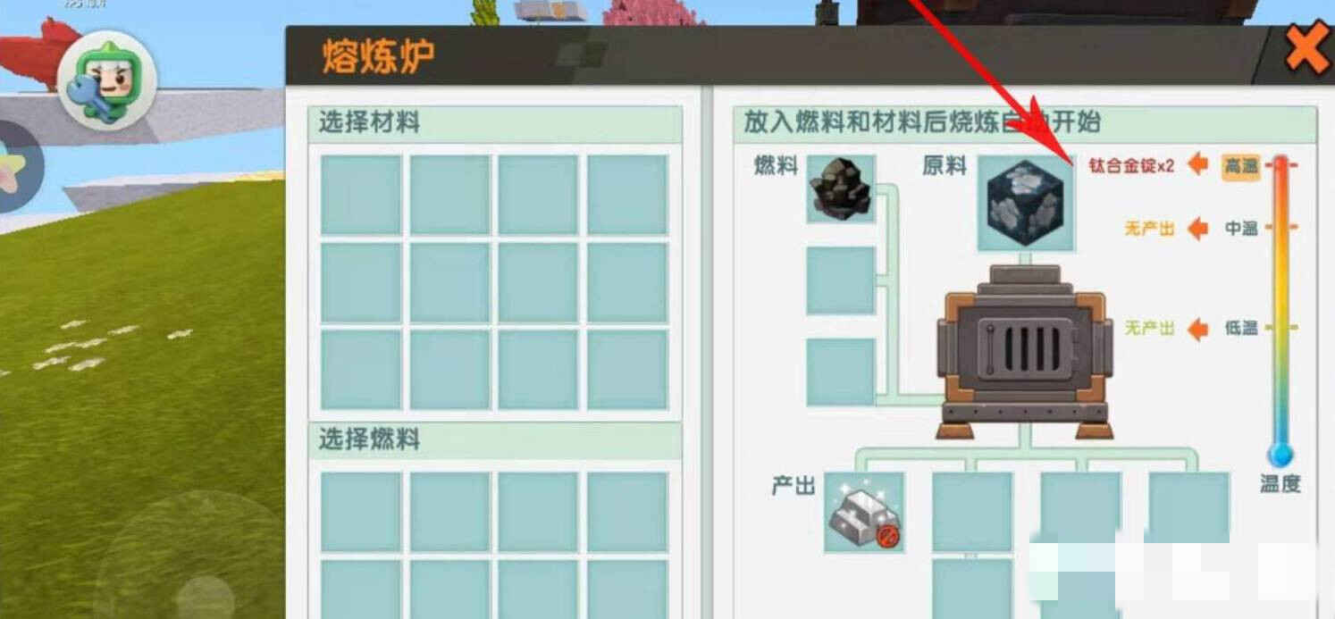 1、打開迷你世界游戏,玩家需要在铁炉中熔炼钛合金矿获(huo)取钛合金锭。