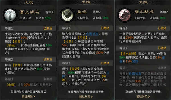 蔡文姬的天赋(tianfu)技能【塞上胡笳】,可以为孙尚香提供治疗,并赋予她【余音】效果,使孙尚香获得一次额外的追击机会。