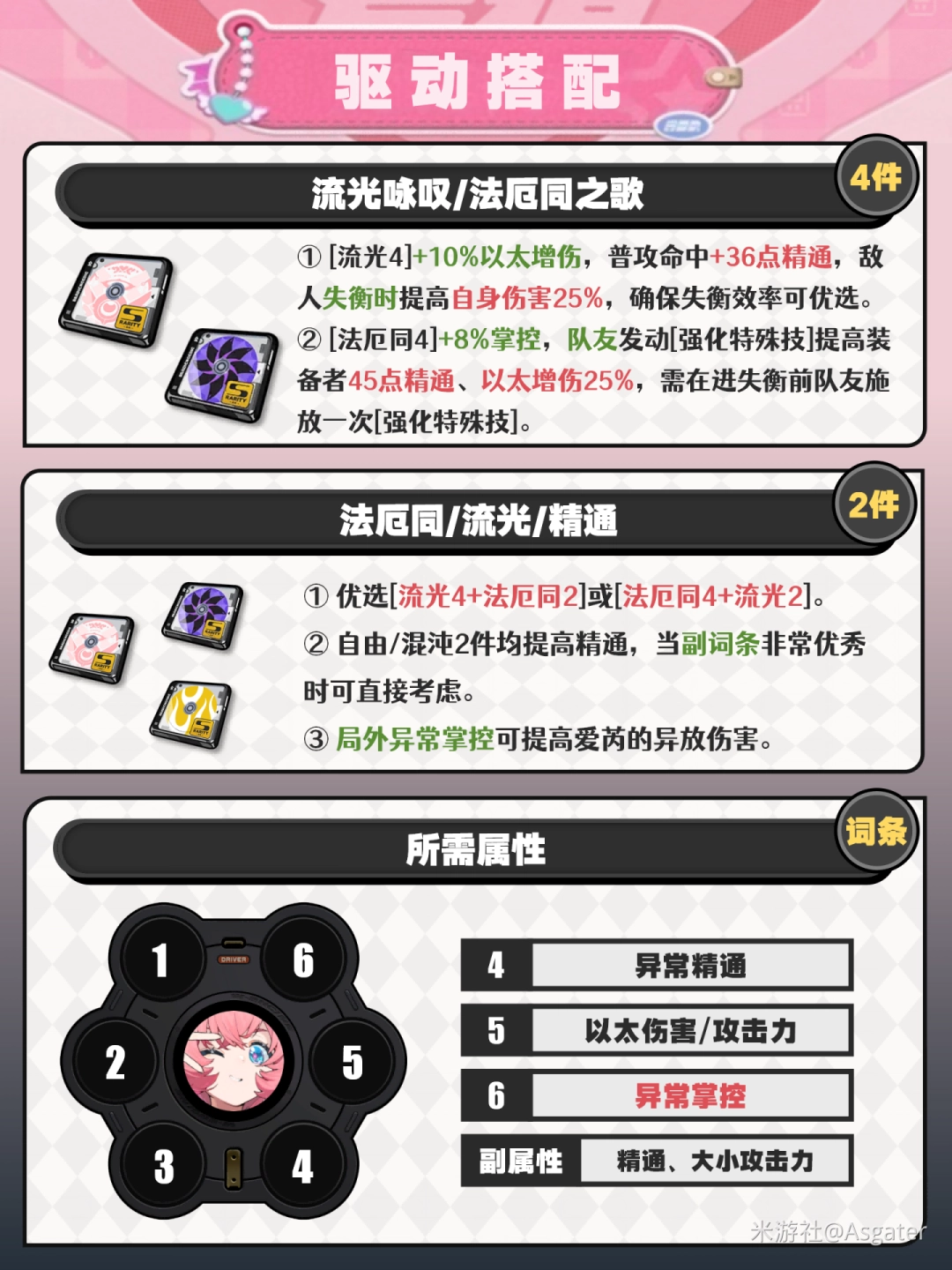③ 4号精通盘,提高爱芮的异常(abnormal)/异放伤害(harm),异常(abnormal)角色基本(basic)都选。