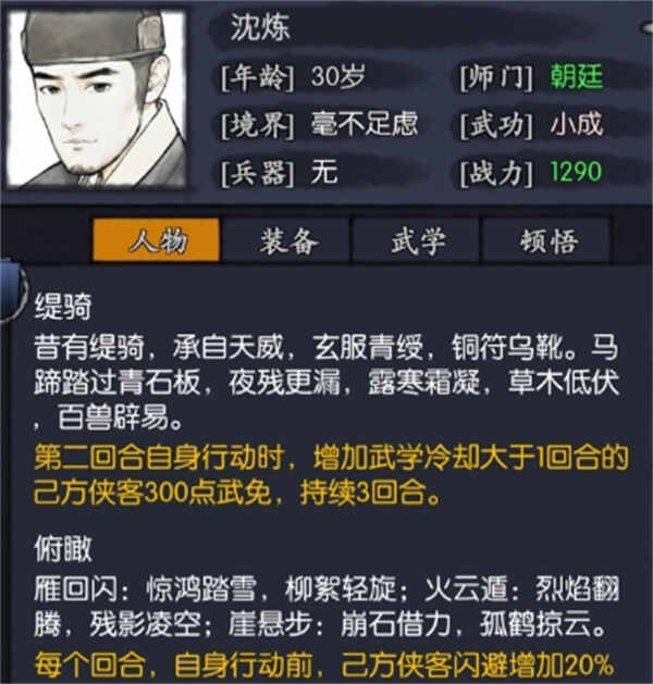 你的江湖沈练侠客分享与搭配方法-你的江湖