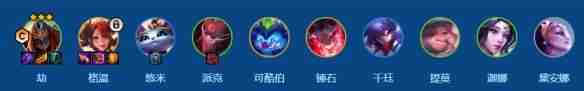 劫、格温、悠米、派克、可酷伯、锤石、千珏、提莫、风女、皎月