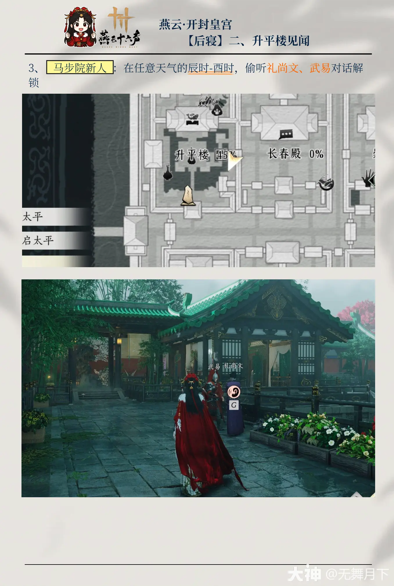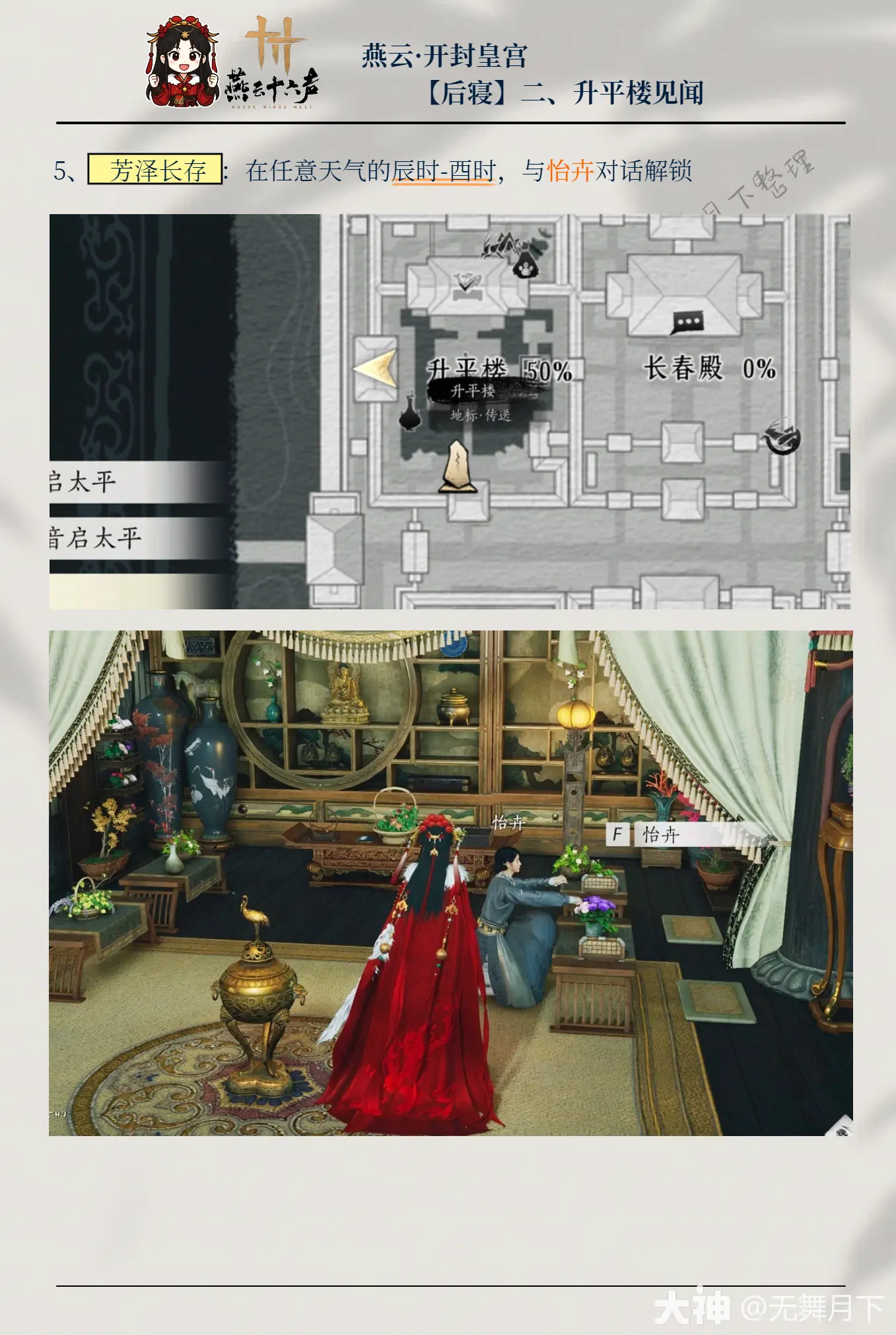 燕云十六声开封皇宫升平楼见闻全收集燕云开封皇宫:升平楼5个见闻图文糼畧。