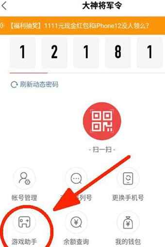 4、在“大神将军令”界(jie)面中,点击“游戏助手”