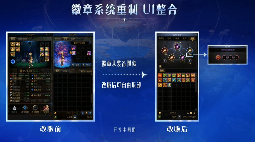 徽章系统变更为徽记系统,红色徽记放红色徽章,有額外屬性加(jia)成(cheng)。