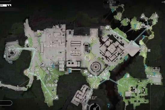顺序为枢纽区-谷地通道-采石场-研究(Research)园-矿脉园区-供能高地