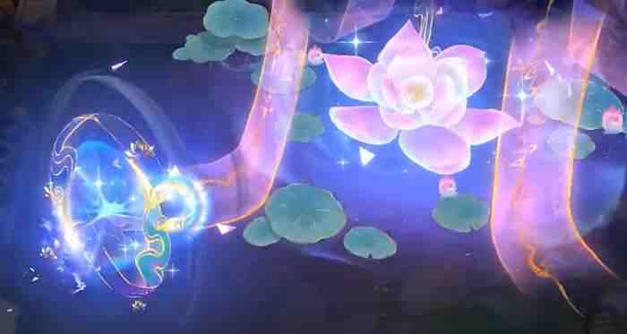 4、动作二:周身绽放月白与淡金交织的荷花光环,尽显才女气度。