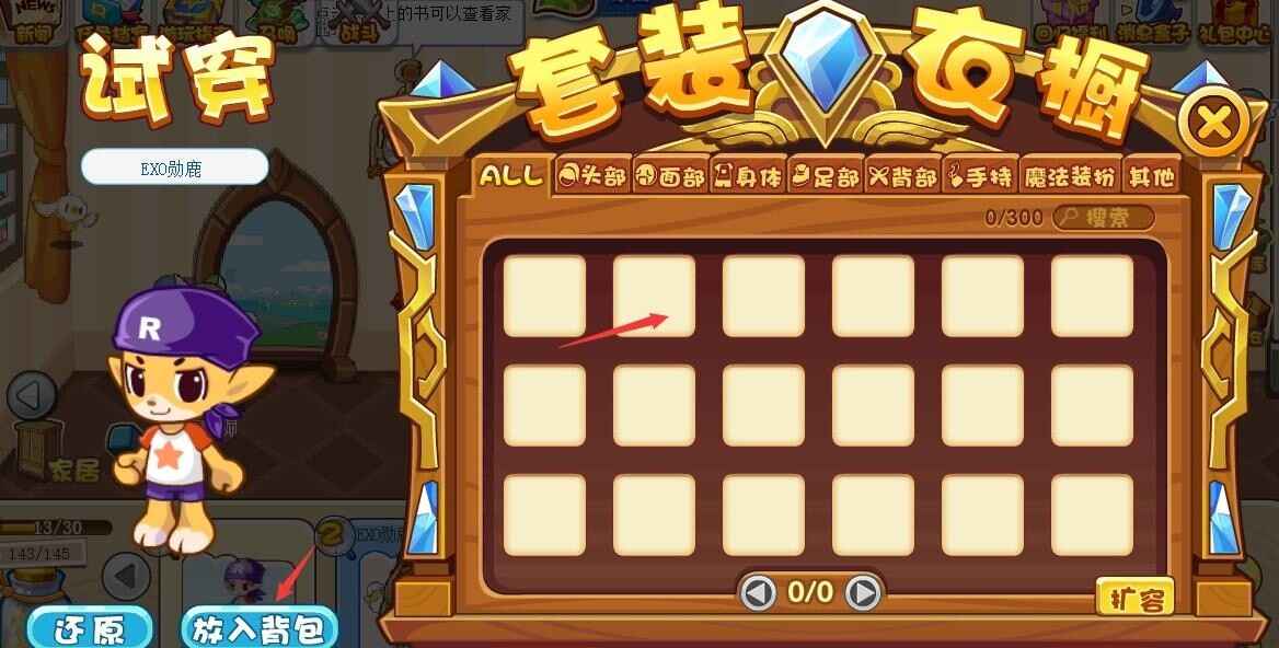 首先,游戏者需(xu)要进入(jinru)洛克王国游戏后,點击打開右下角的傢圎。游戏者进入(jinru)傢圎后,选择(xuanze)家居,最后就(jiu)可(ke)以(yi)看到(See)衣橱了。最后游戏者选择(xuanze)想要(xiangyao)的衣服(clothing)點击放入背包就(jiu)可(ke)以(yi)拿出唻孒。