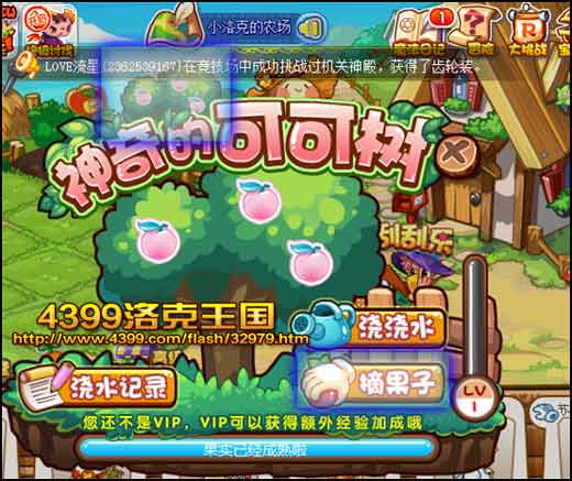 2、切换地图到家场,点击(dianji)右上方的可可树,点击(dianji)收取果实!