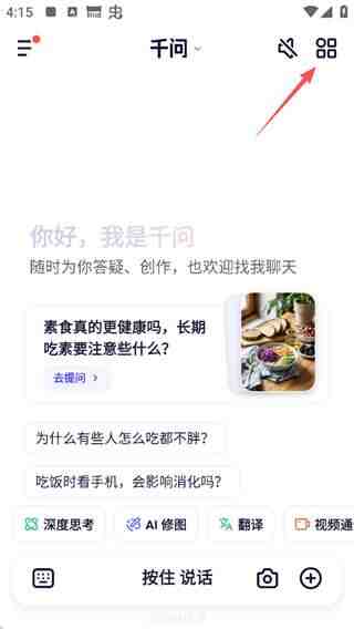 1、打開千问App,點击右上角的格子图(tu)标(biao)