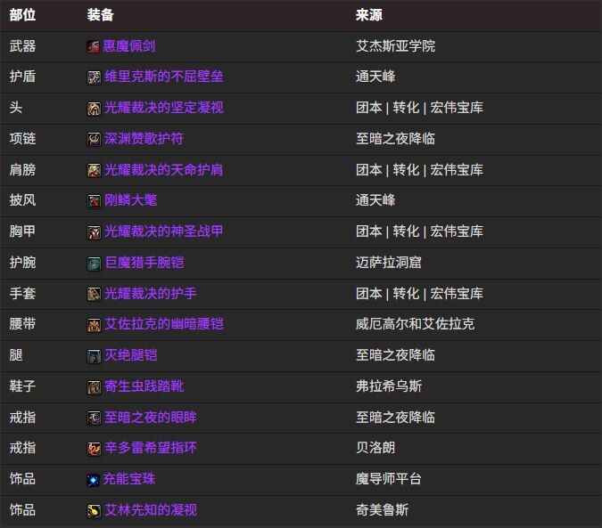 神圣圣骑(qi)士(shi)综合最佳装备(BiS)