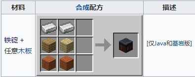 锻造台的合成需(xu)要(yao)2个铁锭和4个任(ren)意木板。