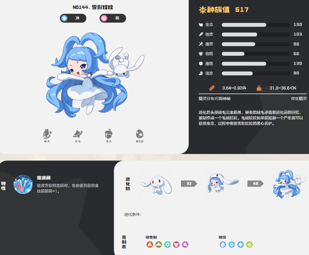 洛克王国世界雪影娃娃图鉴