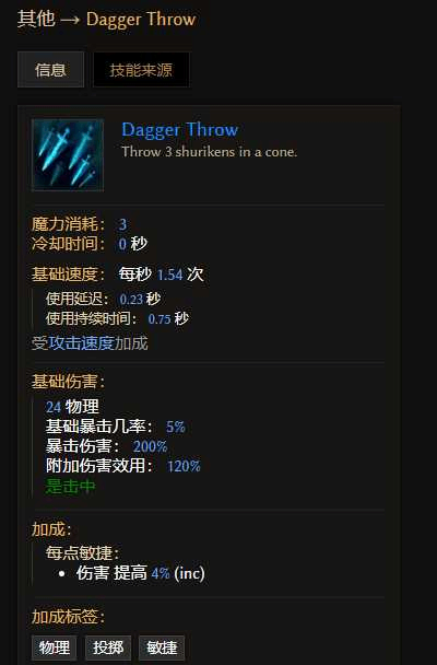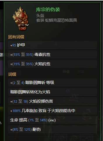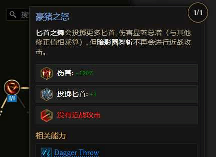 虽然本赛季圆舞斩基础伤害系数大幅提升到300%,但是本身範圍较小,其子技能投掷匕首,更加的强力,虽然伤害系数才120%,但是可以享受圆舞斩技能树上非限近战的全(quan)部more增伤,并且本身还有额外的120%more。因為是投掷伤害,不吃武器基底基础点伤。而新套装头,可以将圆舞斩转出火焰伤害,子技能也会转成火焰伤害。那么不吃武器基底点伤,火系搭配(pei),就要掏出神器火炬了。