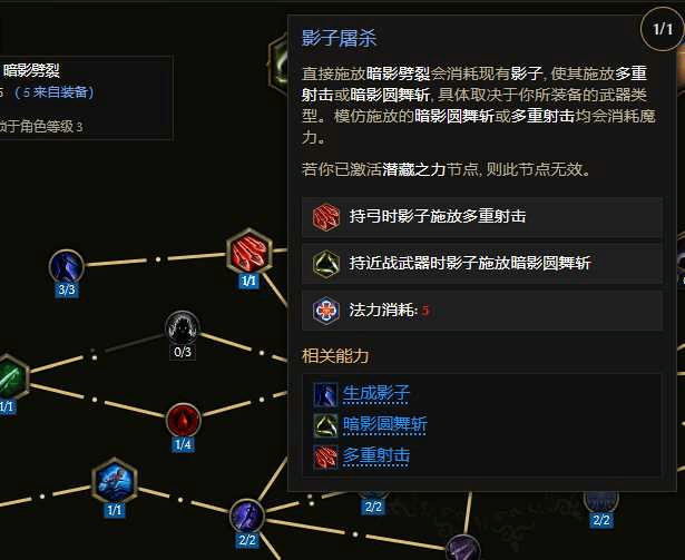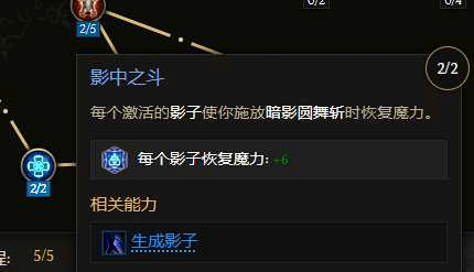 之前版本大多是同步打击触发圆舞斩,魔力难以平衡,且输出间隔较长。通过新技能 暗影劈裂,蓜匼胸甲和手套的+1影子上限,实现7影子常态存在(理论,实际受影子生存速度以及几率影响有波动),搭配(pei)圆舞斩这个节点 釋放一次回42魔力(理想状态)。