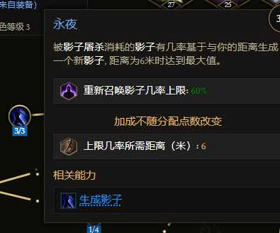 最后纪元刃舞者触发流圆舞斩BD攻略通过暗影劈裂技能 影子屠杀节点,被动触发圆舞斩。搭配(pei)永夜节点和套装遗物词缀达成最多90%几率影子复活,实现无限影子存在,上限7影子,右键无限釋放暗影劈裂,无限消耗影子触发圆舞斩,大幅提升输出。