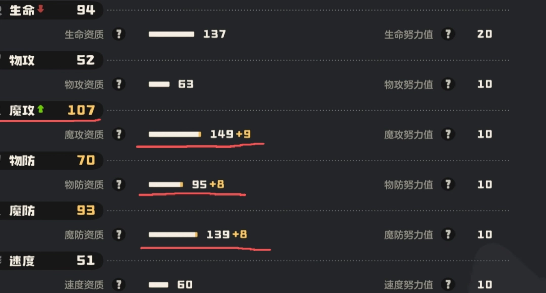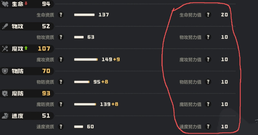 例如(liru):一只了不起天分的固执性格(加物攻、减魔攻)精灵,其个体值一定会有一条加在物攻上。